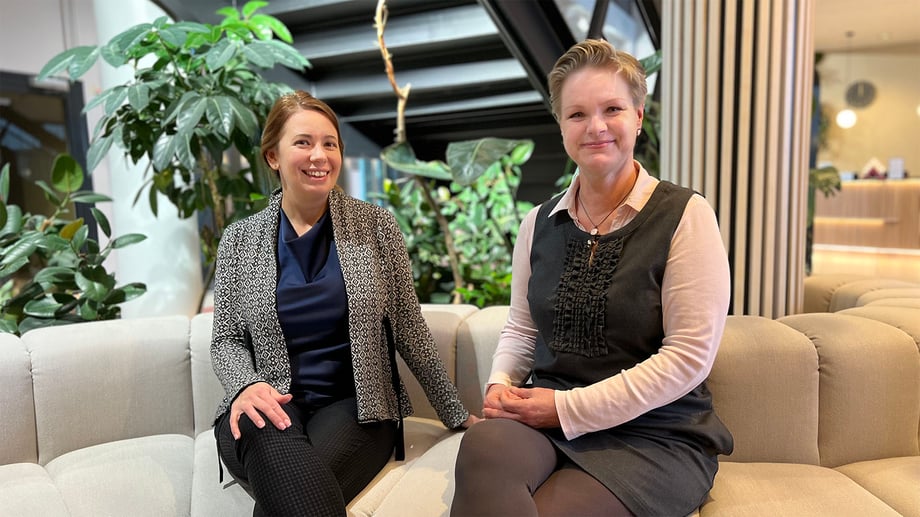 Palmian projektisuunnittelijat Tatiana Pätsi ja Katja Moisio-Jokivaara iloitsevat yrityksen mahdollisuudesta järjestää tutkintoon tähtäävää koulutusta.